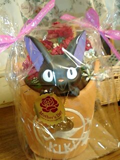 私が欲しがっていた“魔女の宅急便”のジジの植木鉢にカーネーションが入ったもの。