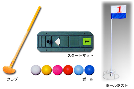 専用のクラブ、ボール、ホールポスト、スタートマットを使用して、